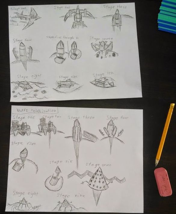 Art Class tends to change along with the current topics of interest in real life. Currently space travel and colonization due to a binge of reading we did about SpaceX.