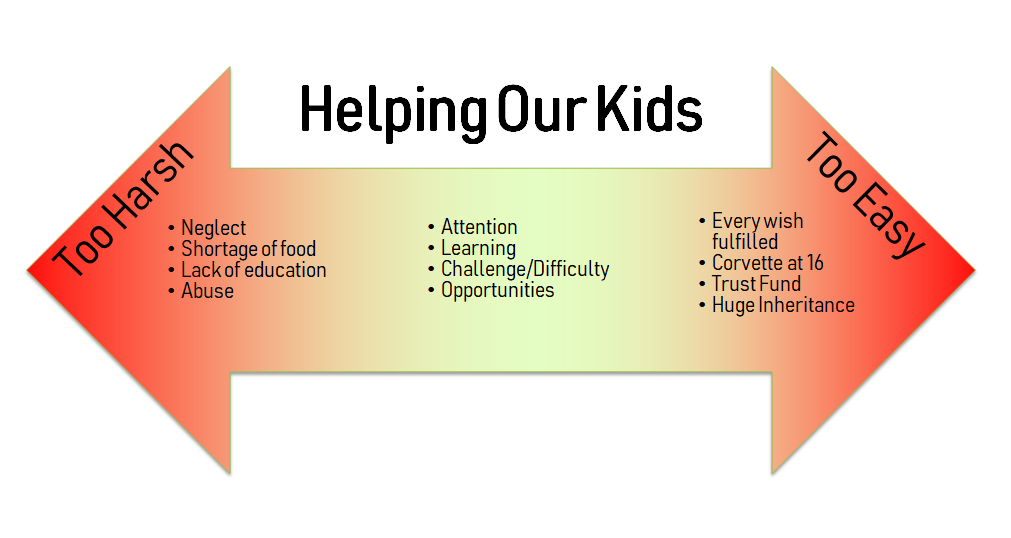 But as with all human pursuits, we have a tendency to go too far and get into the “Too Easy” end of the spectrum. We may be smothering our kids with too much “help”, or perhaps compensating for being so busy with our fancypants careers that we don’t have much time to spend with them.