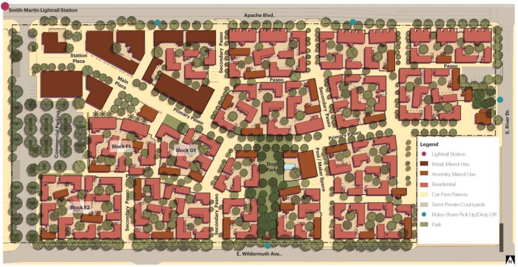 Sounds like many European cities, including Ljubljana, where I live. We still have too many cars, but we also have many parts of the city that work just like this. (In fact, it’s hard to find anyplace to live that isn’t a ten-minute walk from a grocery store and a few other amenities, such as hair stylists, cafes, restaurants, etc.) We’ve also been expanding our bike lanes, car sharing options, and car-free zones. Other European cities are making similar improvements on what were generally already more pedestrian- and bike-friendly urban plans. I hope that this project works well in Tempe and that more U.S. cities get on board.