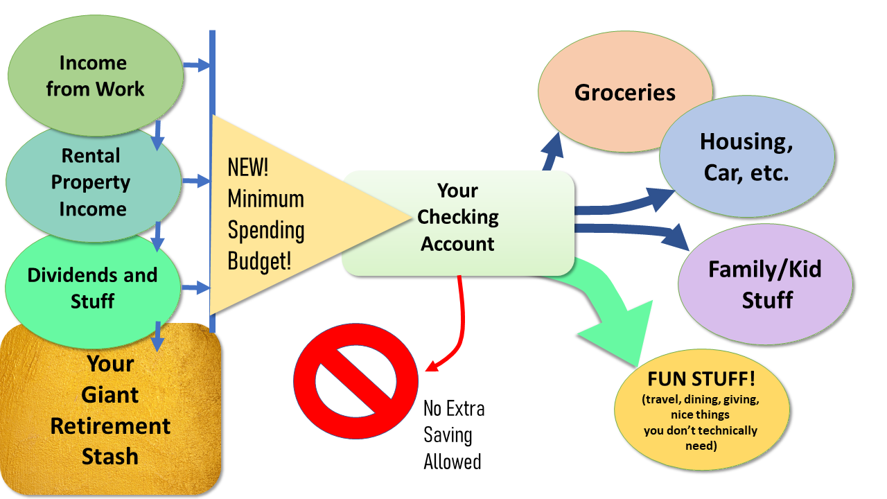 We both realized that we were being too cheap with ourselves, and we needed to work on it. And we came up with a set of three ideas that should hopefully work together to help us have more fun with our life savings, while we are still alive: